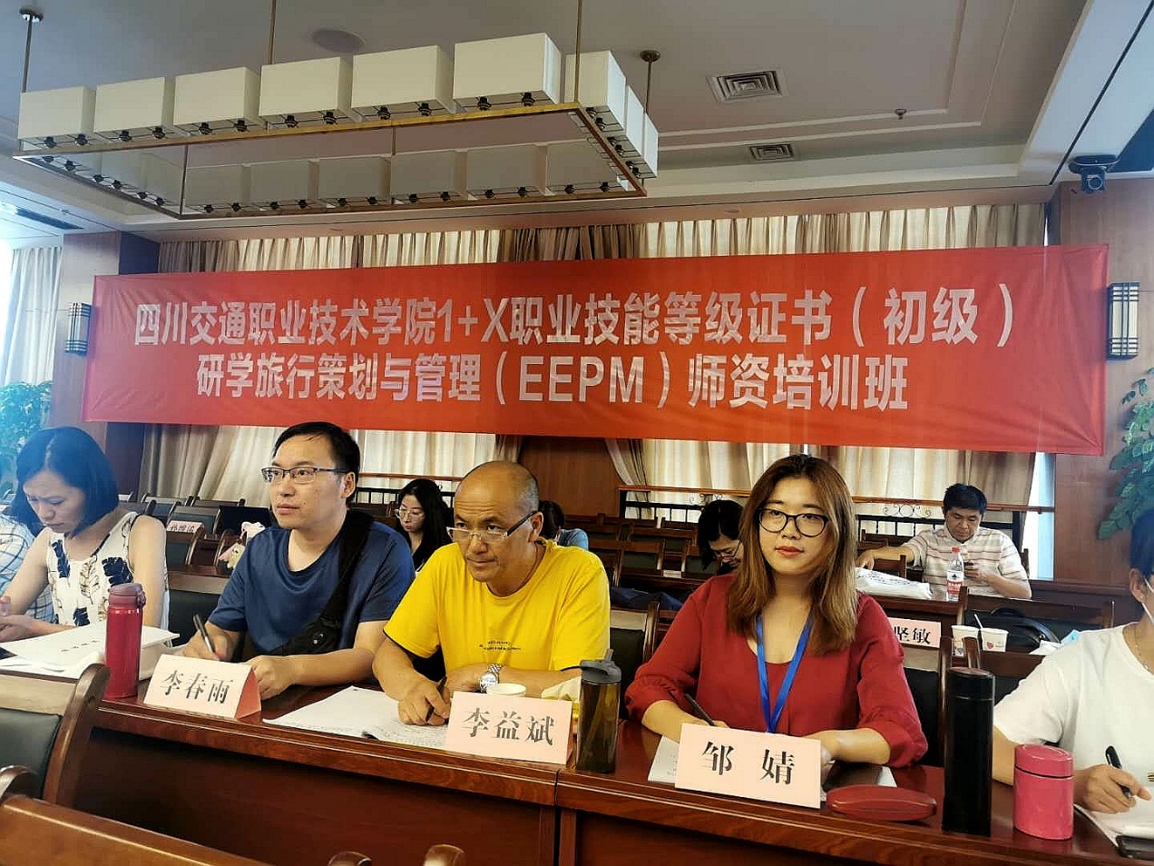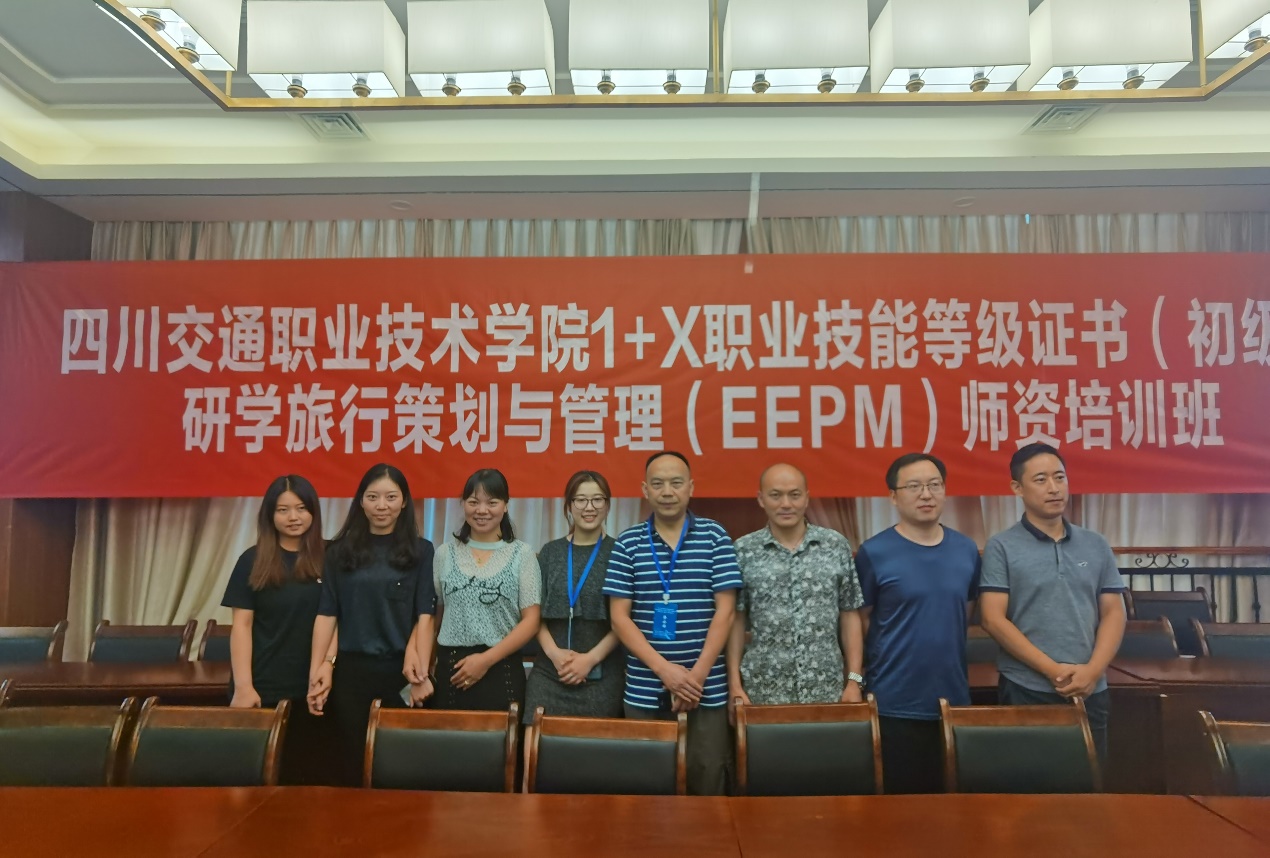 为贯彻落实《教育部等11部门关于推进中小学生研学旅行的意见》、《国家职业教育改革实施方案》(国发〔2019〕4 号)、教育部等四部门印发《关于在院校实施“学历证书+若干职业技能等级证书制度试点方案》(教职成〔2019〕6号)、《关于推进1+X 证书制度试点工作的指导意见》(教职成厅函〔2019〕19 号)文件精神,积极推进我校研学旅行策划与管理(EEPM)职业技能等级证书试点工作,加强经管学院旅游学科及专业教师团队建设,积极探索旅游管理与服务教育专业的旅游+教育的培养定位能够落实和落地,打造能够满足研学旅行教学与培训需求的“双师型”教师团队。8月4日至8月9日,经管学院副院长李清茂教授带领学院教师一行8人,前往四川交通职业技术学院参加亲子猫(北京)国际教育科技有限公司举办的研学旅行策划与管理(EEPM)职业技能等级证书指导教师培训班,参加培训学习的教师还有谭志蓉、李春雨、李益斌、刘吉婷、邹婧、曹茂婷、杨桄7位老师。
