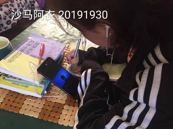 2019级彝族学生沙马阿依通过手机认真学习《管理学原理》