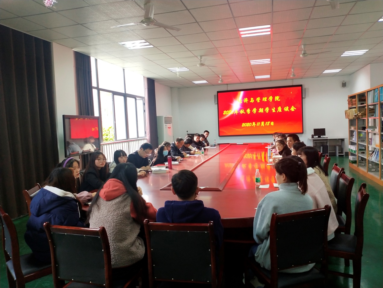 【本网讯】2020年11月18日下午四点,经管学院于实验楼C104召开学生座谈会。我院党支部副书记薛国喜同志、学院副院长李清茂教授、学院教学科研办公室主任王小琴副教授、财务会计教研室主任马久云老师、旅游服务教研室主任李春雨老师出席会议,另有各班学习委员、学生代表参会。此次会议由学院副院长李清茂教授主持。