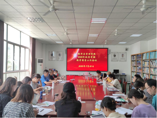 【本网讯】2022年8月20日上午,经济与管理学院在实验楼C104会议室召开学院2022年第一次教学督导全体会议。参会人员有学院党委书记薛国喜同志、院长李清茂教授、旅游管理与服务教育教研室主任李春雨老师、财务会计教育教研室主任马久云老师以及其他任课教师,会议由李清茂院长主持。