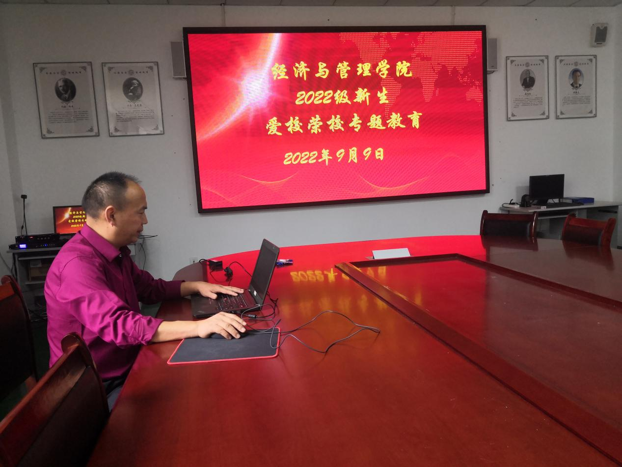 【本网讯】为了让经济与管理学院2022级新生认识了解学校、认识了解学院、认识了解专业和认同所学专业,理解和接受专业培养目标,主动思考大学阶段发展目标,制定符合学生自身实际学习目标和职业生涯发展目标,让2022级新生能更快速融地入新的大学学习和生活,快速地从高中毕业学生向大学在校学生转变,学院院长李清茂教授于2022年9月9日上午9:00,采用线上方式为2022级新同学举行线上爱校荣校专题教育。