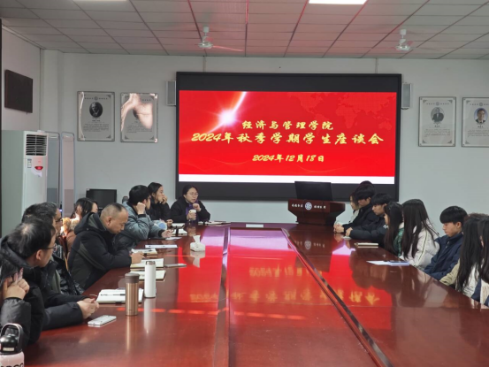 【本网讯】2024年12月18日(星期三)13:00点,经济与管理学院于实验楼C104会议室召开学生座谈会。学校督导申向阳老师、学院书记薛国喜同志、院长李清茂教授、教研室主任李春雨老师、谢抒宏老师、督导秘书颜欢老师、教科办助理郑皓月老师、辅导员张小威老师、杜海兰老师参加会议。参加本次座谈会的学生代表有2024级、2023级、2022级各班班长或学习委员及学生代表,座谈会由学院院长李清茂教授主持。