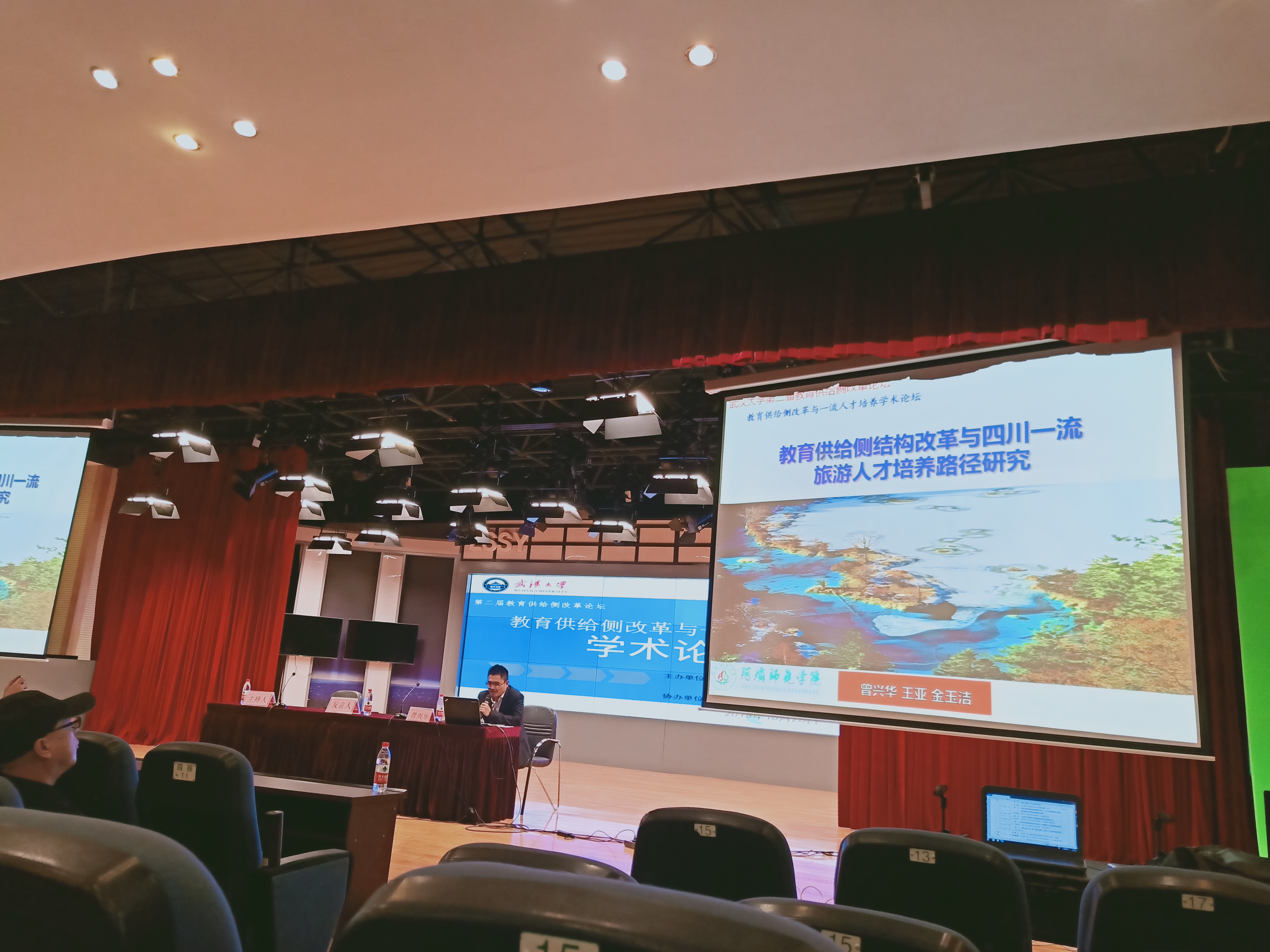 10月26日下午,我院曾兴华老师作了《教育供给侧结构性改革与四川一流旅游人才培养路径研究》的发言,围绕教育供给侧结构性改革与旅游人才培养的逻辑基点、现实关照和路径选择三个方面,紧扣四川省文化旅游产业紧缺人才需求,省内旅游学科供给侧结构性改革现状,提出了加强四川省一流旅游人才培养的路径。