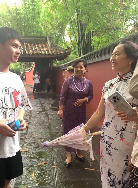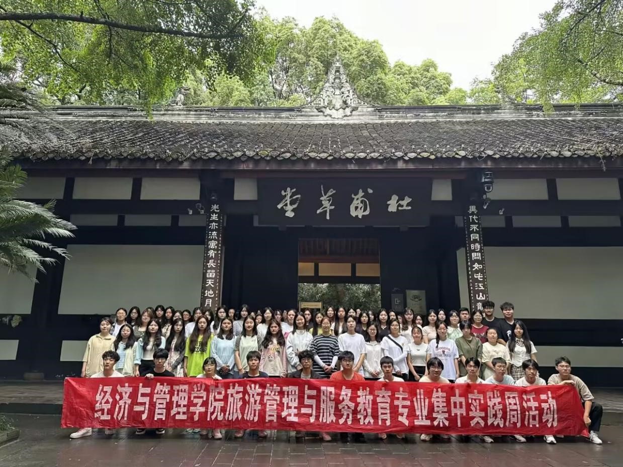 5月28日早上7点,全体师生出发前往杜甫草堂。这里是杜甫曾经居住和创作的地方,也是他留给后人的宝贵文化遗产。草堂虽然简陋,但却透露出一种朴素而深沉的美。同学们按照分好的小组进行讲解游览,漫步在草堂内,被那些刻在墙上的诗句所吸引。它们或表达了对国家命运的关切,或抒发了个人的情感与抱负。每一句诗都蕴含着深刻的思想和情感,让人深感杜甫的才华与情感之丰富。不仅如此,杜甫草堂的园林景观也给同学们留下了深刻的印象。这里的花草树木、假山流水都布置得恰到好处,与草堂的诗意氛围相得益彰。在这样的环境中,我仿佛能够身临其境地感受到杜甫当年的创作灵感和心境。