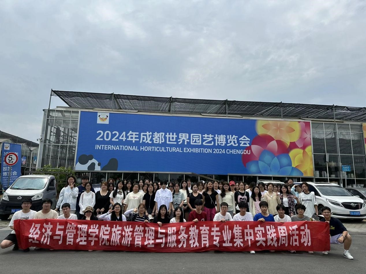全体学生紧接前往下一站成都世界园艺博览会,对其进行考察调研实践。世园会郫都分会场以花卉苗木为主题,展示了全球花卉产业最新动态和新优品种,同时还有成渝地区花卉产业成就馆和花卉园艺场景馆等展馆,以及大眼花园和川花自主创新园等花+文旅项目,游客可以在展馆和花园中欣赏花卉美景,并在花市购买花卉,大家驻足于此,不忍离去。第一天的行程至此已全部结束。