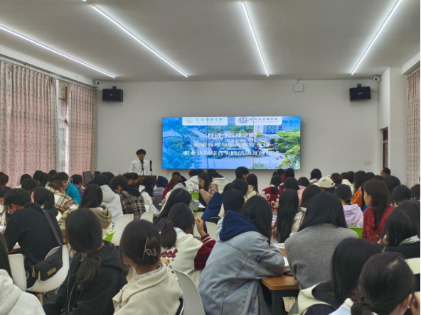 【本网讯】为提升旅游管理与服务教育专业新生认识“旅游业的发展趋势”对未来就业有规划。 10月28日上午,我校旅游管理与服务教育专业2024级全体同学,在就业指导中心展开了别开生动的旅游认知实践活动,并举行了开班仪式。经济与管理学院院长李清茂、经济与管理学院教授张林、童蒙雅正文旅集团李正佐、普向未来讲师邓世刚、叶睿等共计120余人参加活动。