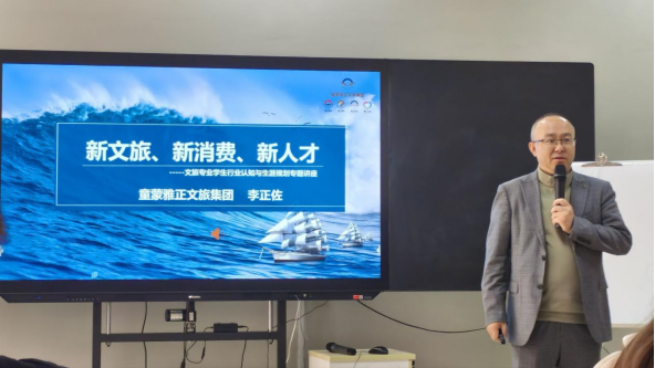 童蒙雅正文旅集团董事长李正佐在实验楼c509举行《新旅游、新消费、新人才:旅游行业认知及生涯规划》专题讲座。
