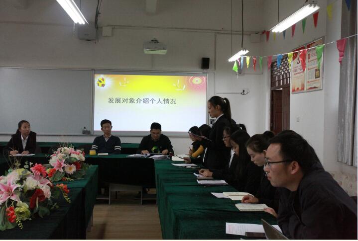 首先,我院党支部书记曾兴华老师宣布党支部发展党员大会正式开始,全体起立,奏唱国际歌。随后,徐红梅等7名发展对象依次向大会介绍个人情况、对党的认识、入党动机和本人现实表现。马久云、曹茂庭等入党介绍(培养)人对7名发展对象的培养考察情况进行汇报,并点评了发展对象存在的缺点和不足。党支部宣传委员李春雨同志代表支部宣读支委会意见,主要包括对7名发展对象的考察、培训和个人政审情况,与会党员同志也相继发表了自己的看法,表明态度,也指出发展对象的不足及努力方向。