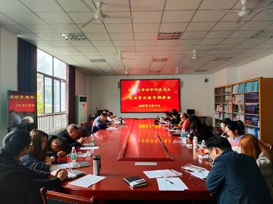 【本网讯】为深入学习领会习近平新时代中国特色社会主义思想,巩固深化“不忘初心、牢记使命”主题教育成果,全面贯彻落实党的十九届五中全会精神,更好总结历史经验、认识历史规律、掌握历史主动,筑牢党的执政根基。根据党委中心组(扩大)会议安排部署,为扎实做好我院党员和师生党史学习教育工作,3月17日下午,我院党总支在实验楼C104召开学院党史教育部署大会,大会由学院党总支副书记薛国喜主持。