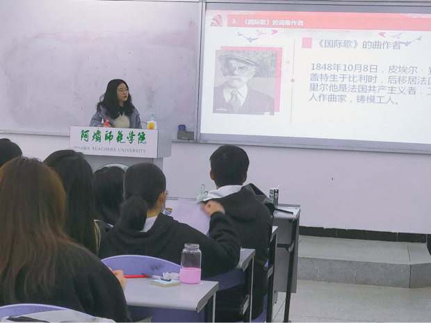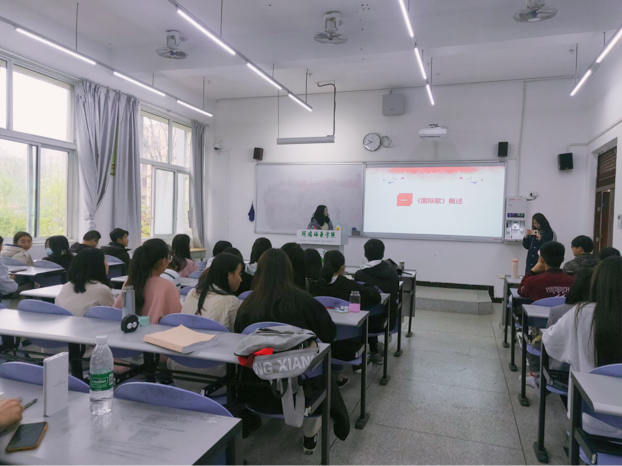 最后,全体同学起立合唱《国际歌》与《国歌》。聆听了党课后,同学们纷纷表示,此次党课内容丰富,史料详实,具有一定的理论高度和指导意义。