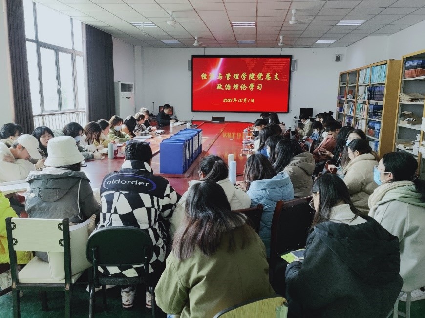 【本网讯】2021年12月1日,经济与管理学院党总支召开党员大会,学习贯彻党的十九届六中全会精神,会议由党总支书记薛国喜主讲。