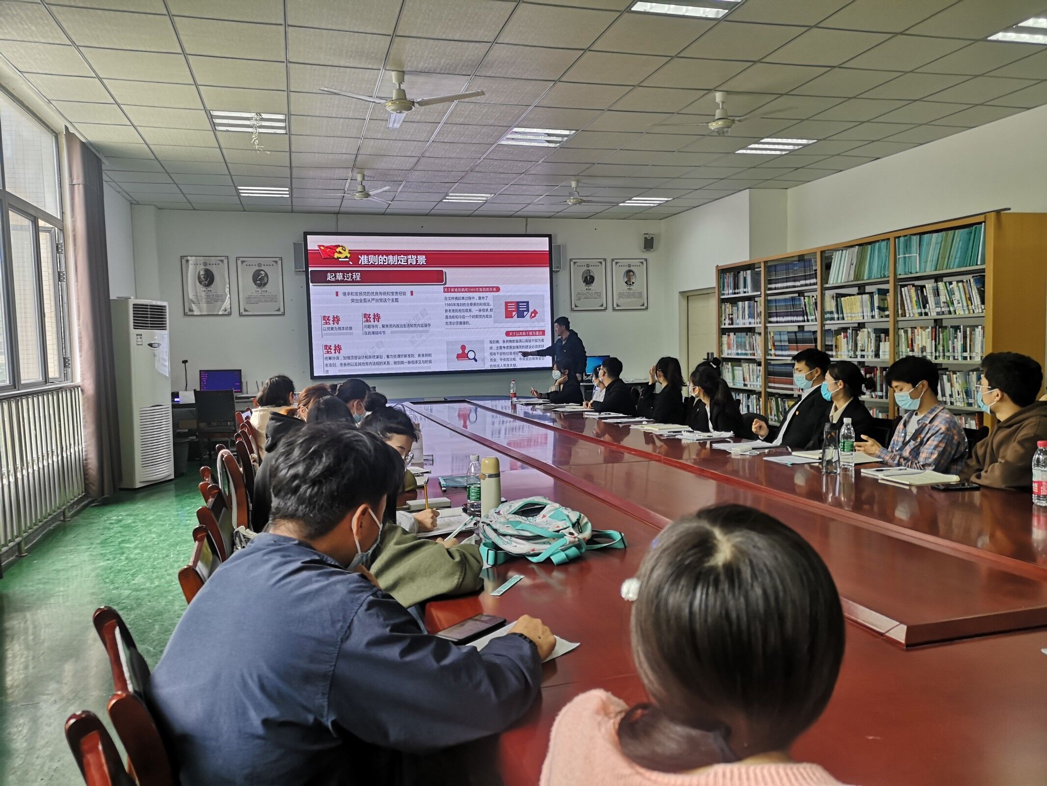 在授课中,薛国喜书记深入浅出地从此准则的制定背景、起草的过程、重点和关键、出现的一些问题以及围绕坚定理想信念等十二个方面做了细致的讲解。极大程度上帮助党员发展对象和预备党员从日常生活的角度理解了关于新形势下党内政治生活的若干准则,也帮助大家更加明确了作为一名中国共产党党员应该承担的责任和义务。最后,薛国喜老师带领全体参会人员重温入党誓词后,线下党校培训第一课顺利结束。