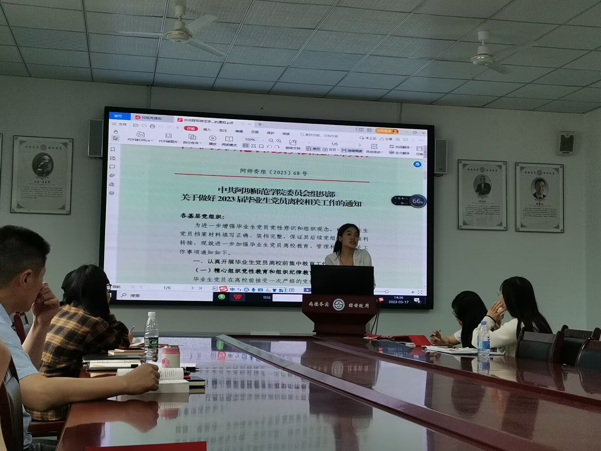 首先,次仁次姆详细讲解了《中共阿坝师范学院委员会组织部关于做好2023 届毕业生党员离校相关工作的通知》文件精神和要求,确保毕业生党员档案材料填写正确、装档完整,保证其后续党组织关系顺利转接。