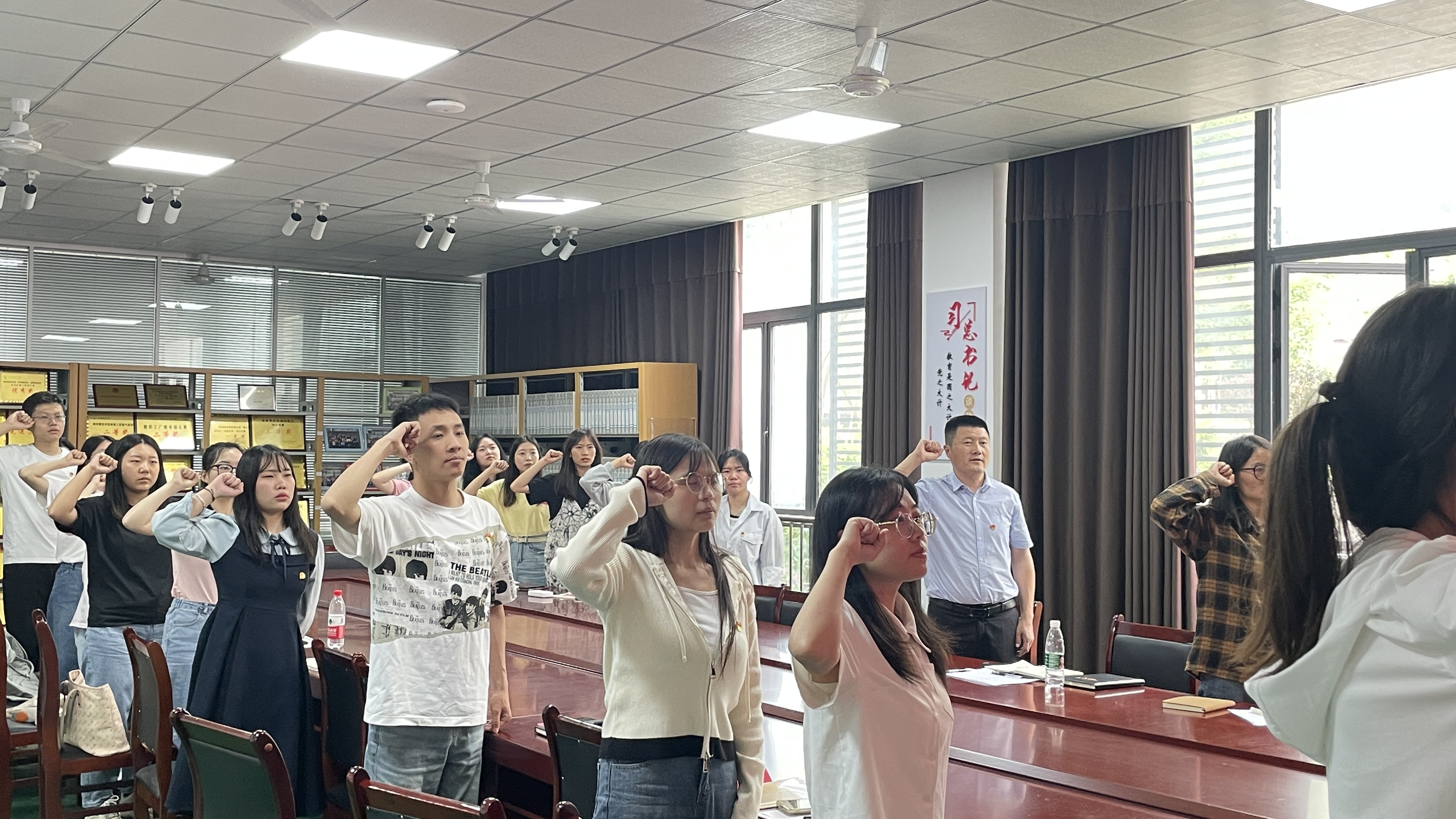 【本网讯】为深入开展学习贯彻习近平新时代中国特色社会主义思想主题教育,进一步增强毕业生党员党性意识和组织观念,引导毕业生党员时刻铭记党的宗旨,坚定理想信念,践行青年责任,牢固树立“四个意识”,坚定“四个自信”,做到“两个维护”,引导毕业生党员在毕业离校之际带头做好安全离校、文明离校和感恩离校,经济与管理学院于2023年5月17日,在实验楼C104会议室开展“重温入党誓词、不忘入党初心”为主题的党性教育活动。学院党委书记薛国喜、第二党支部书记白玛措老师、组织委员次仁次姆老师以及毕业生党员参加,会议由白玛措主持。