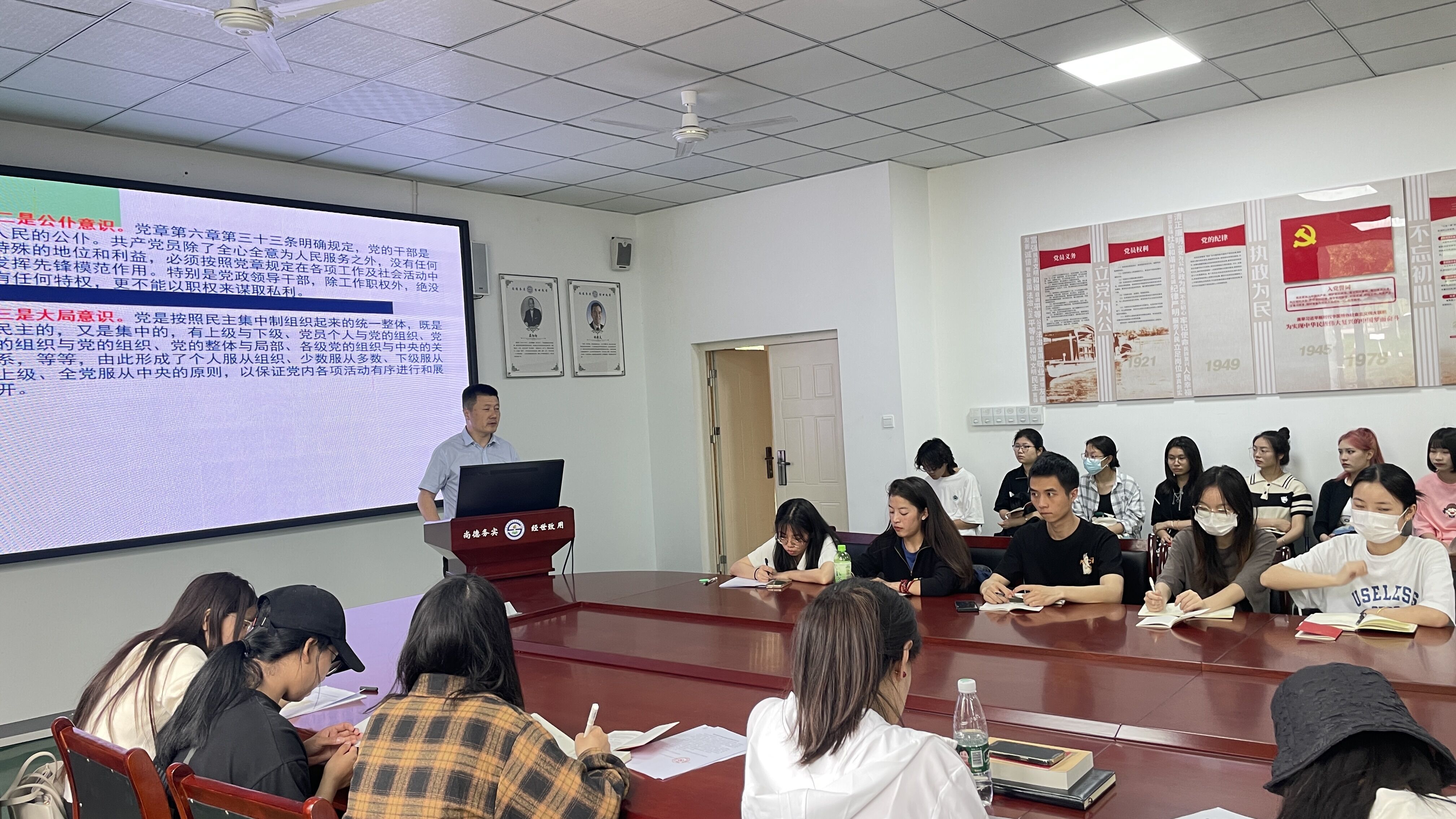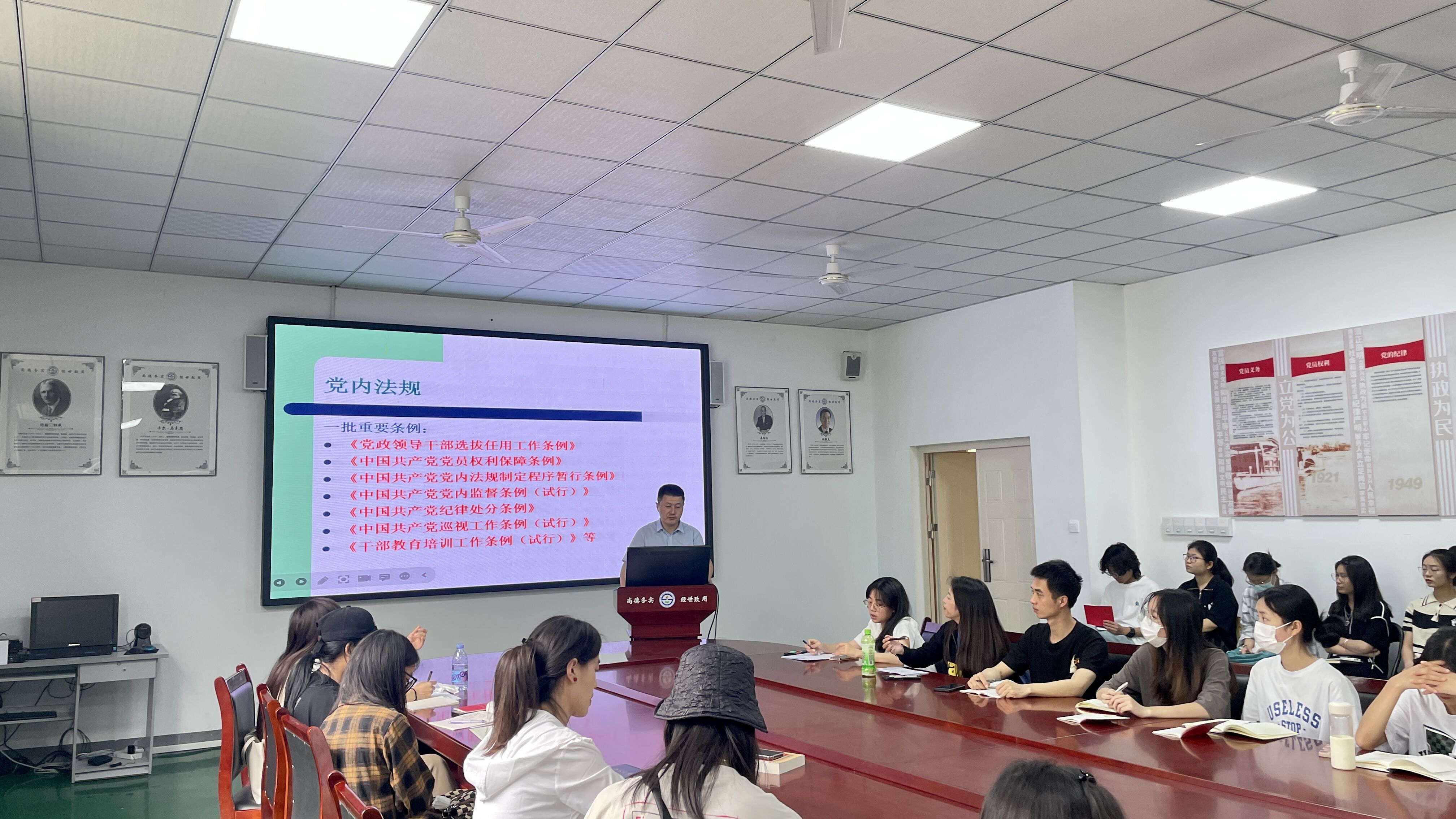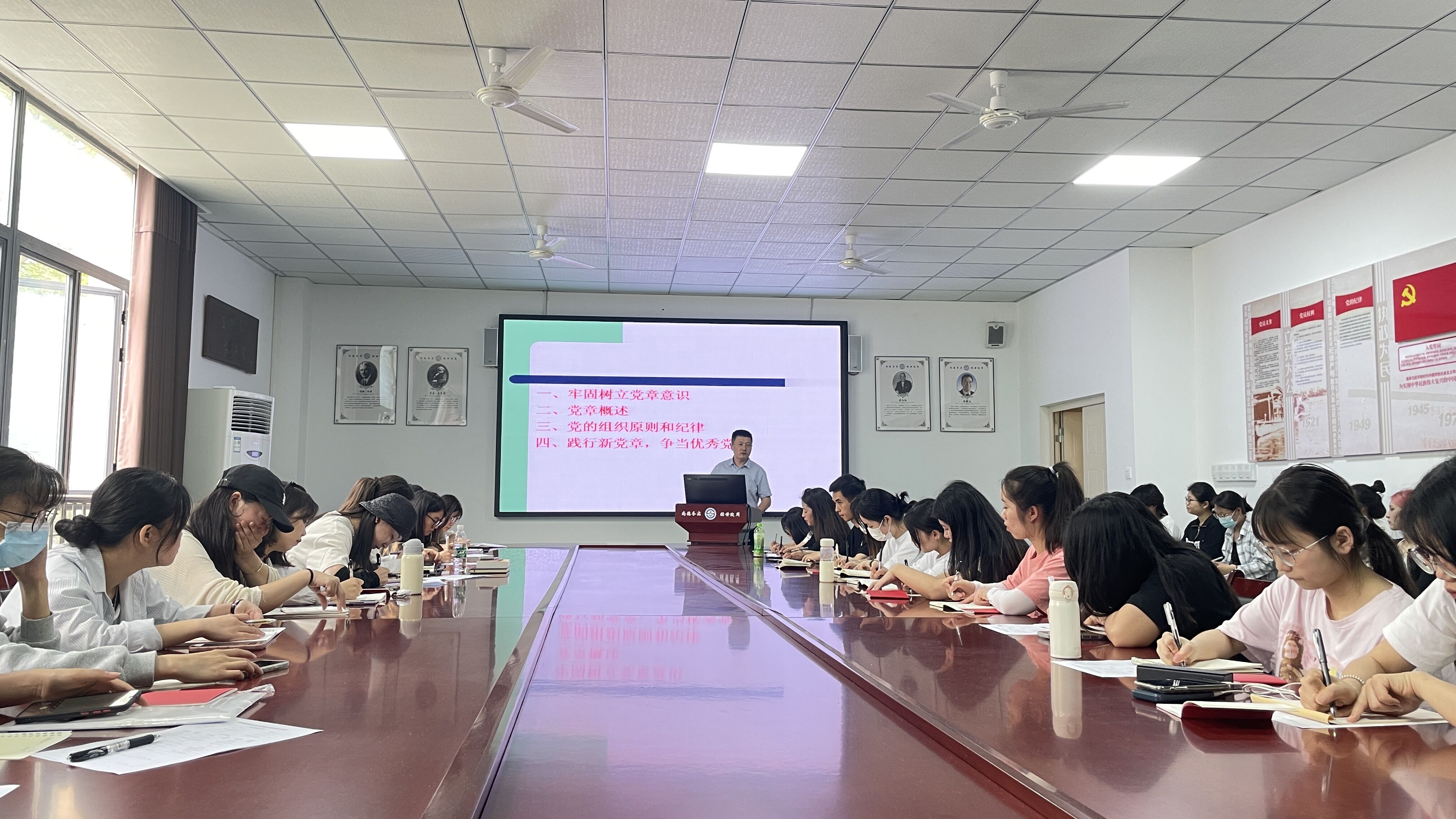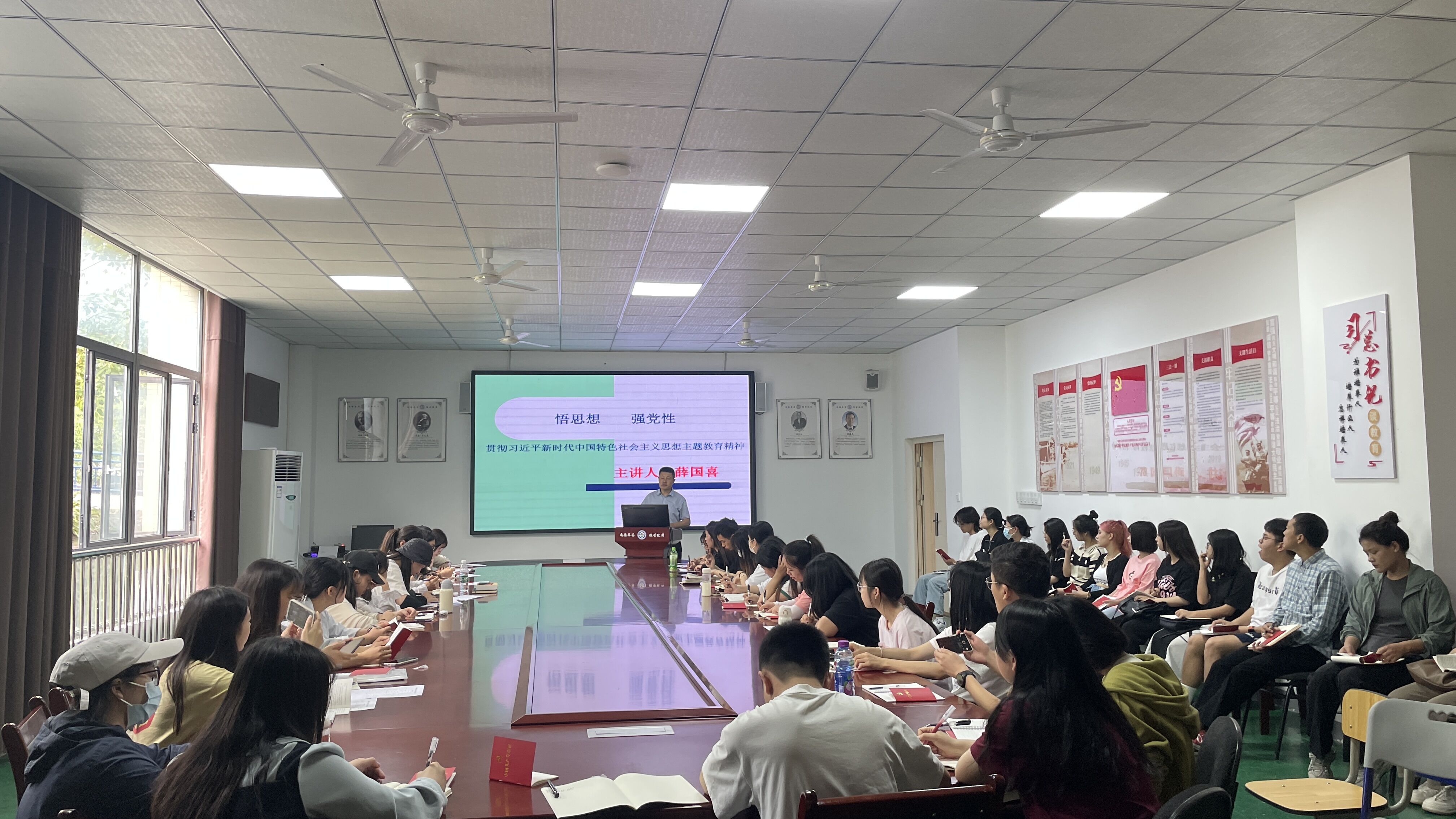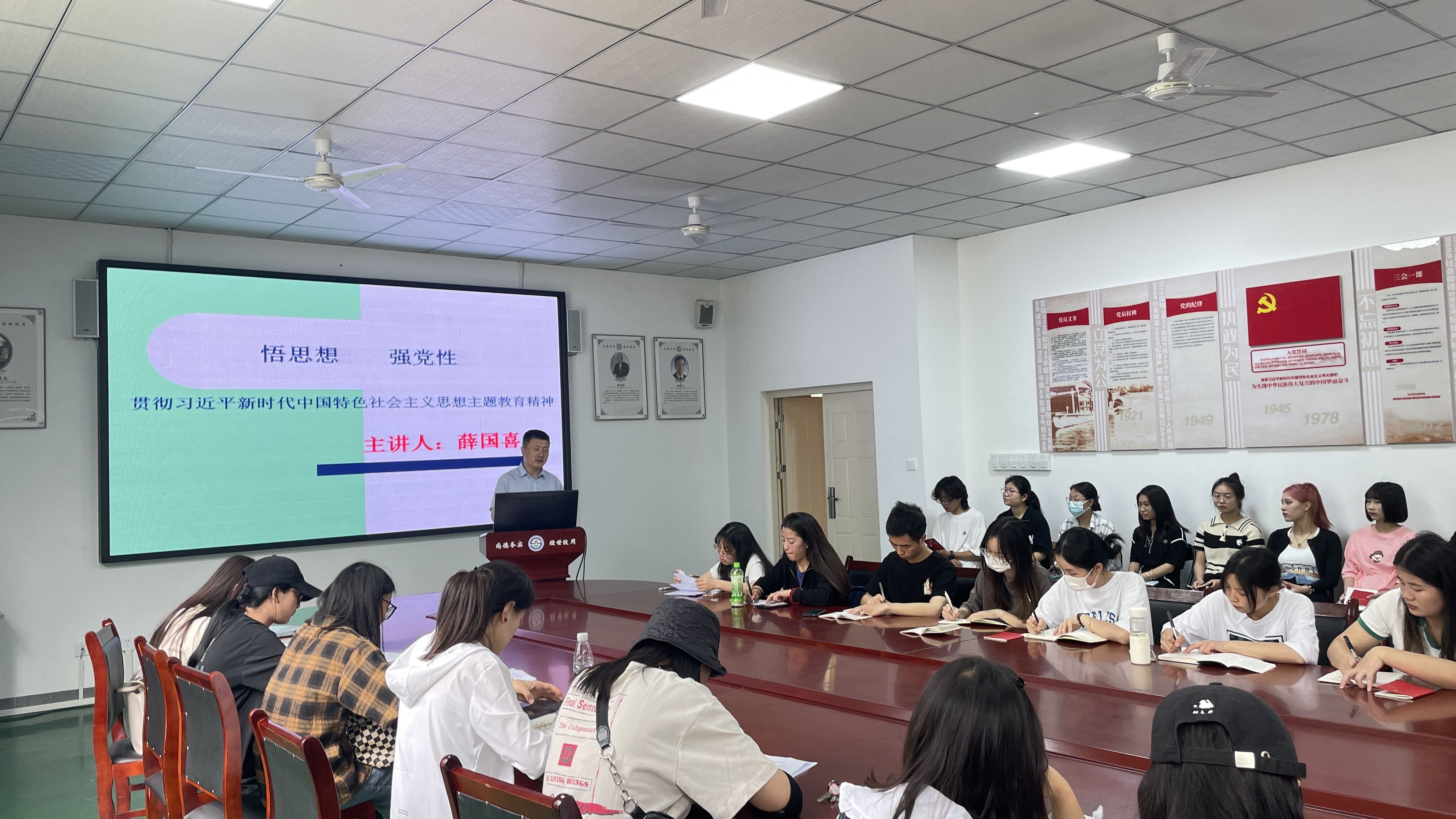 他强调,要把学习贯彻习近平新时代中国特色社会主义思想这一重大政治任务作为鲜明主线,紧扣主题教育目标任务部署谋划,结合工作实际,读原著学原文悟原理,各党支部认真组织 “三会一课”、主题党日等活动,结合实际,丰富学习载体,采取交流研讨、宣讲阐释、案例教学、线上线下培训等方式,扎实推进党的创新理论学习教育。