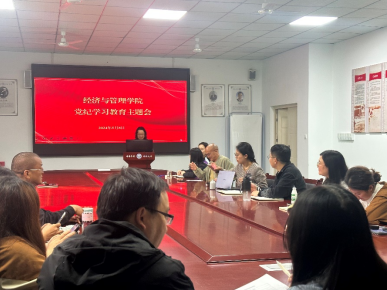[本网讯]为进一步加强学院党风廉政建设,提升全体党员的纪律意识和规矩意识,经济与管理学院于2024年5月8日下午在学院会议室召开党纪学习教育会议。本次会议由学院纪委书记、副院长赖静主持,全院党员教师及学生党员积极参与,彰显了学院对党性教育与纪律建设的高度重视。