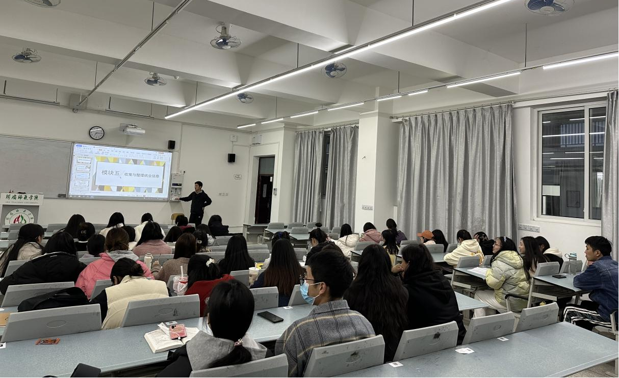 【本网讯】为进一步推进毕业生就业指导工作,帮助毕业生尽快了解就业形式、增强择业意识,经济与管理学院3月28日,在树人楼C201顺利开展就业指导。此次课程主要针对2019级旅游管理与服务教育专业毕业生。内容包括大学生就业形势分析、收集与整理就业信息、撰写求职材料、了解毕业手续与流程和维护合法的就业权益。