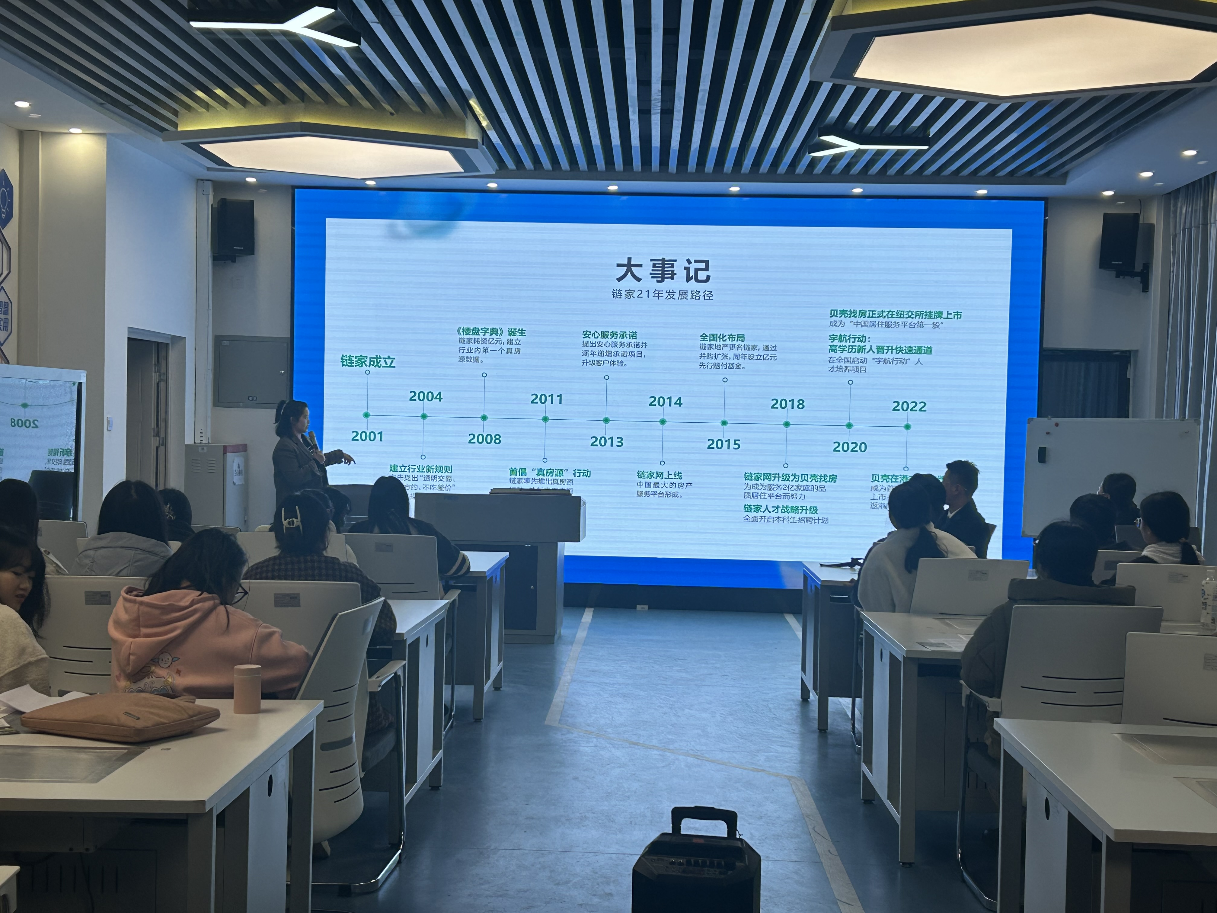 链家集团王经理详细介绍了链家集团的基本情况、招聘岗位、工作职责和校园招聘的流程,与传统房地产中介公司不同,链家公司采用线上营销模式,对毕业生的能力要求更高。公司也针对年轻人群体,制定了比较科学的职业发展通道,多方位地解决员工的诉求。