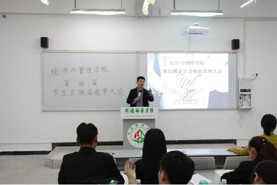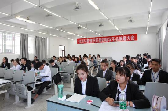 本网讯 2019年9月25日,14点30分我院第四届学生会换届选举大会于树人楼C202召开。本次会议的主要内容是产生新一届学生会主要成员,是我院学生干部新老交替的总结性会议。与会的领导有经济与管理学院党总支副书记薛国喜、经济与管理学院辅导员、经济与管理学院第三届学生会全体人员。