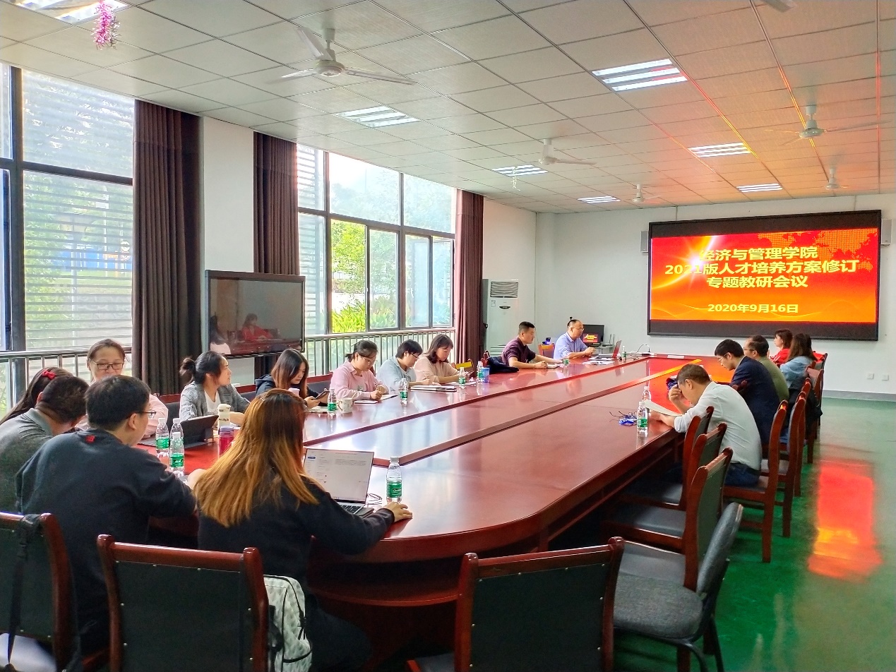 【本网讯】为深入贯彻落实习近平总书记关于教育的重要论述和全国教育大会精神,贯彻落实中共中央办公厅、国务院办公厅《关于深化新时代学校思想政治理论课改革创新的若干意见》,把思想政治教育贯穿人才培养体系,全面推进高校课程思政建设,发挥好每门课程的育人作用,提高高校人才培养质量,结合2021版人才培养方案修订工作要求,推进经管学院旅游管理与服务教育专业和财务会计教育专业课程思政教材内容进人才培养方案、进教案课件、进考试,经管学院,经管学院于9月9日在实验楼C幢104会议室召开专题教研会议,学院全体教师参加了本次教研会议。