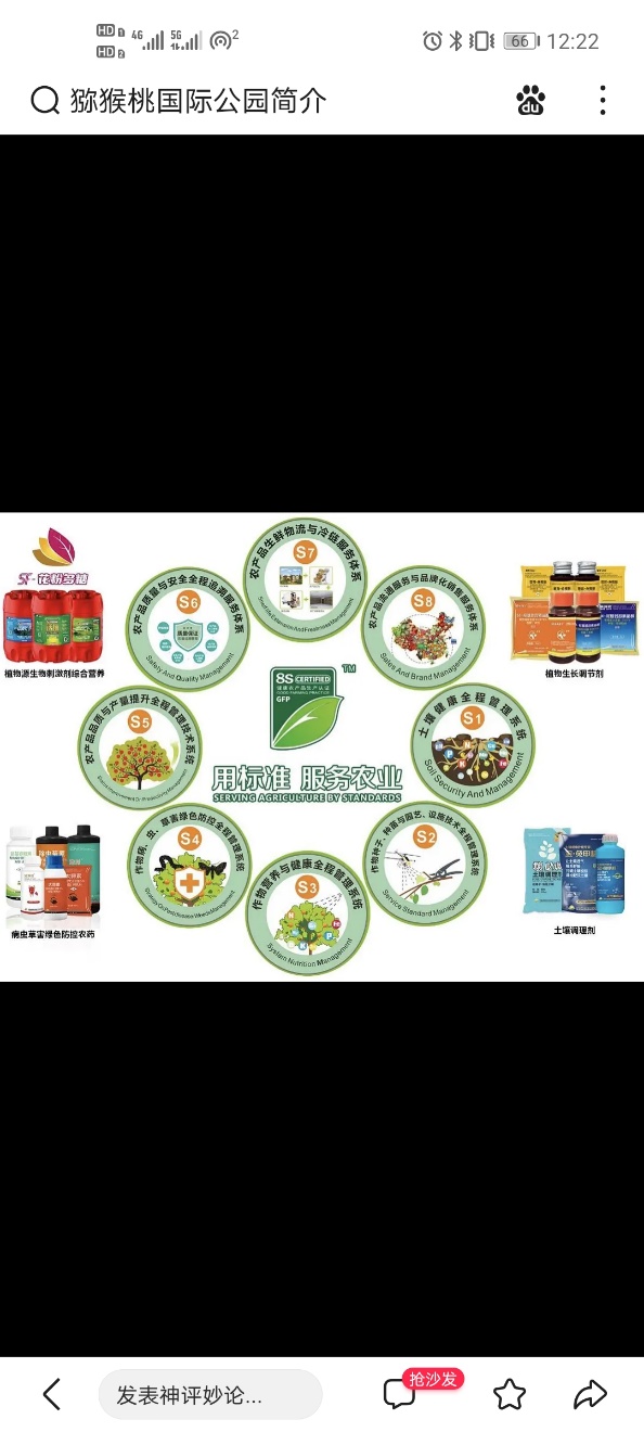 新朝阳作为绿色农业全程植保服务商,以生物技术生测试验示范基地为样本,独创性的提出“健康植保 8S 标准化管理体系”。并在生测示范基地建设了健康植保8S标准化管理服务体系的标准化示范园区。“健康植保 8S 标准化管理体系”涵盖了以下 8 个方面:(1)土壤健康全程管理;(2)作物种子、种苗与园艺设施技术管理;(3)作物营养与健康管理;(4)作物病虫草害绿色防控管理;(5)农产品品质与产量提升管理;(6)农产品质量与安全可追溯服务管理;(7)农产品生鲜物流与冷链管理;(8)农产品流通与品牌化销售管理。