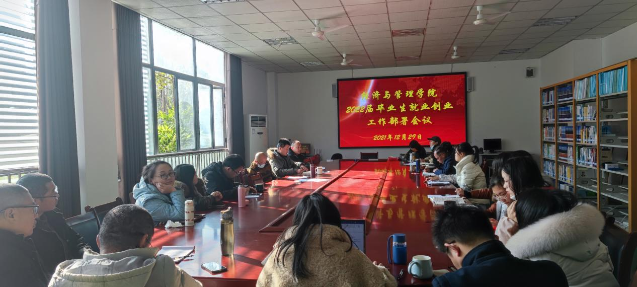 【本网讯】为深入学习贯彻党的十九届六中全会精神,落实2022届全国和四川省普通高校毕业生就业创业工作网络视频会议精神,为传达我校2022届毕业生就业创业工作部署会议精神,同时调动全院教师指导学生就业积极性以及主动性,我院于2021年12月29日在实验楼C104开展了2022届毕业生就业工作推进会,会议由党总支书记薛国喜主持,全院教师参加本次会议。