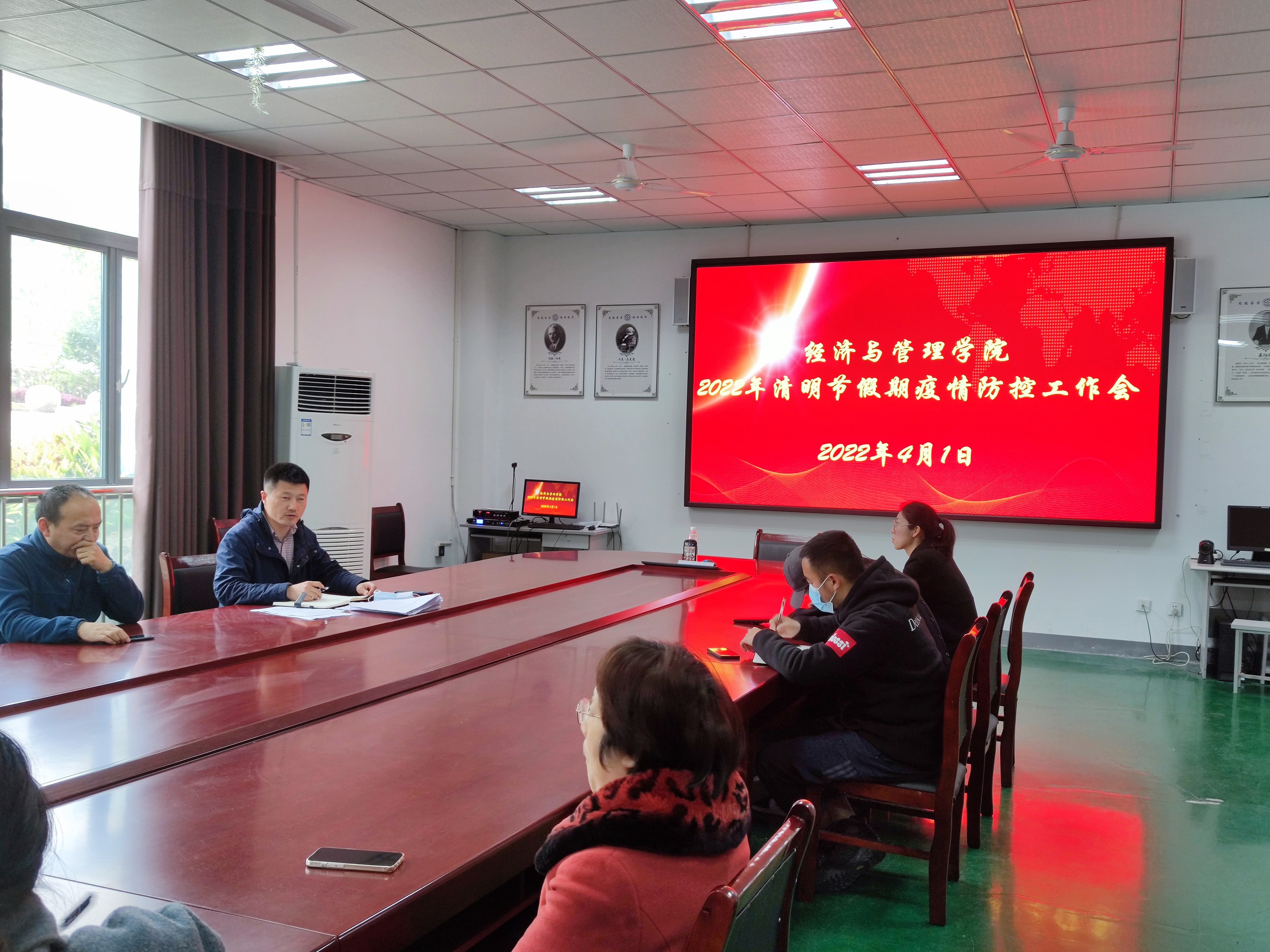 【本网讯】为进一步做好疫情防控工作,引起师生高度重视。2022年4月1日下午,我院于实验楼C104会议室召开2022年清明节假期疫情防控工作会议。本次会议由学院党委书记薛国喜同志主持,经济与管理学院全体老师参加了此次会议。