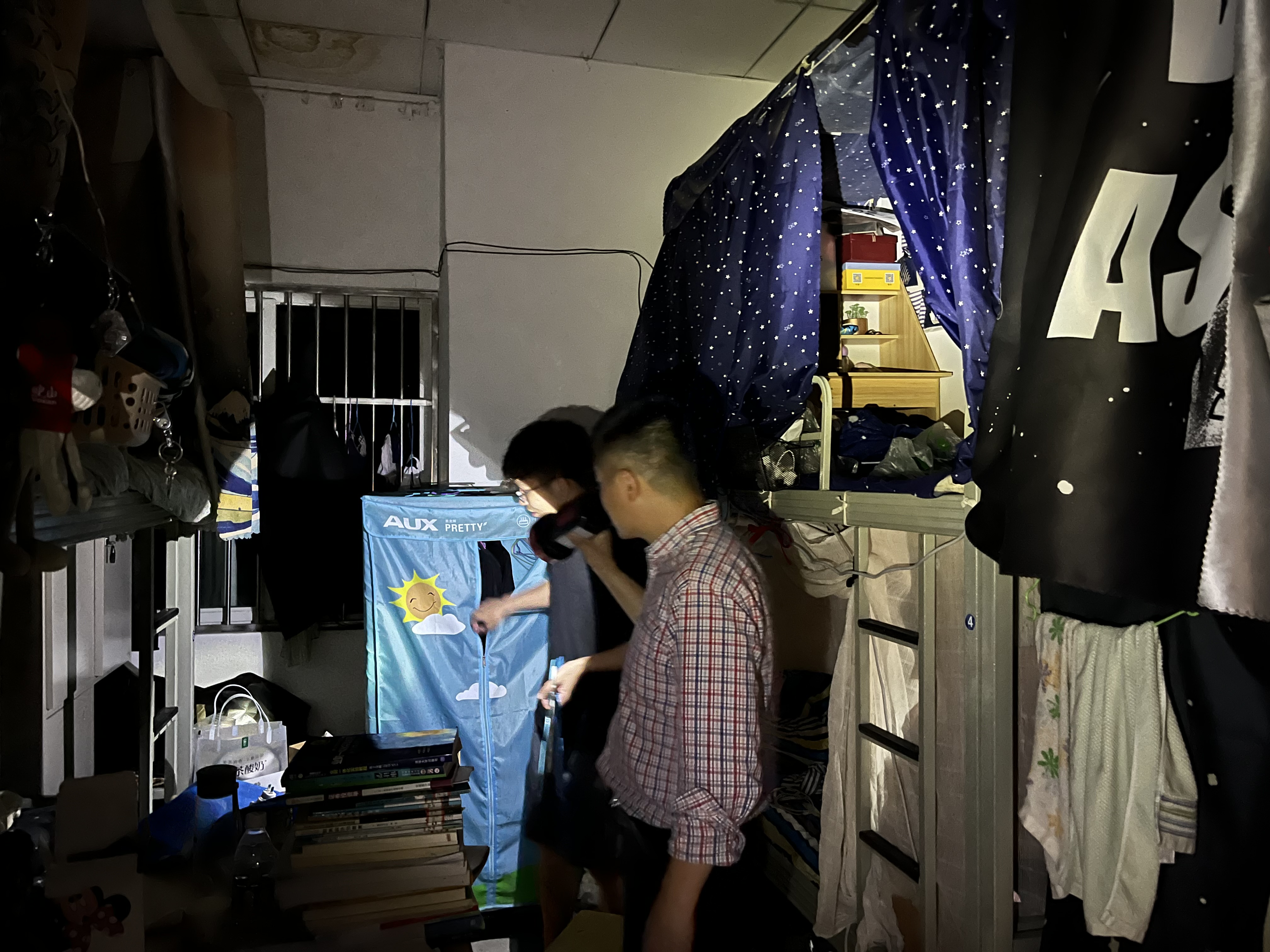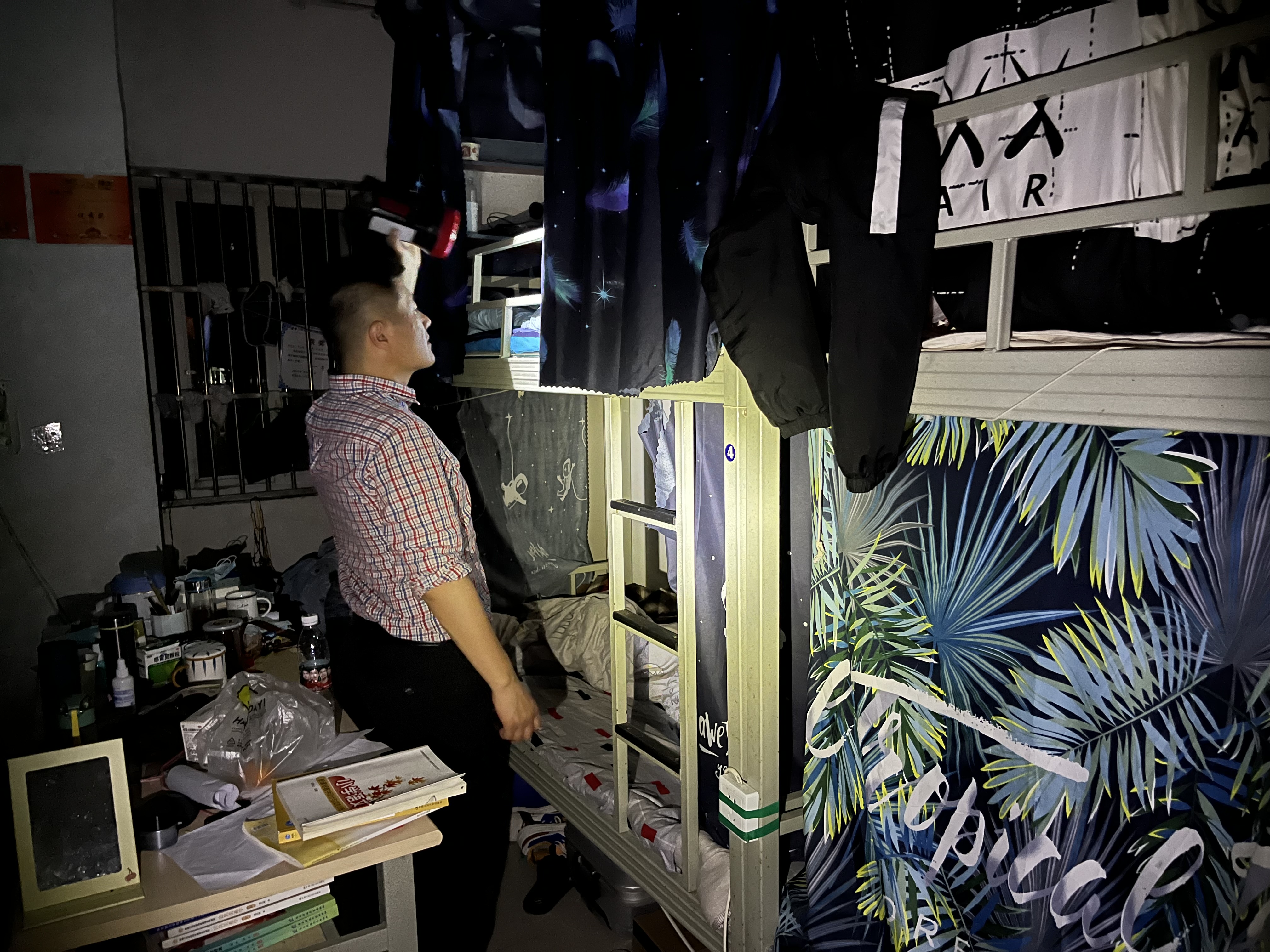 首先,老师一行人来到学生公寓十公寓,十公寓由于线路检修尚未供电,寝室楼一片漆黑,老师们打着手电筒逐个寝室进行走访了解和慰问学生。薛国喜书记叮嘱同学们要注意寝室用电安全,告诉同学们后勤处和电力公司正在加紧施工,这两天就可以恢复正常供电,希望同学们再坚持一下,有用电需求可以至教学楼、学生食堂和办公室内充电,老师们办公室都增设了临时插座来保障同学们的用电需求。薛国喜书记强调,虽然寝室停电了,但是寝室内一定不能使用明火照明,坚决杜绝使用蜡烛等,在寝室狭小空间内发生意外后果将不堪设想,各个电器开关也要检查保持断电状态,避免突然来电造成安全隐患。