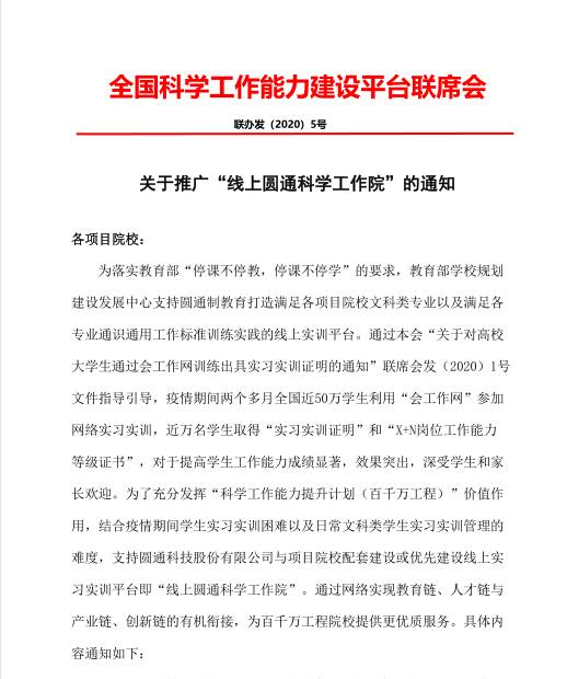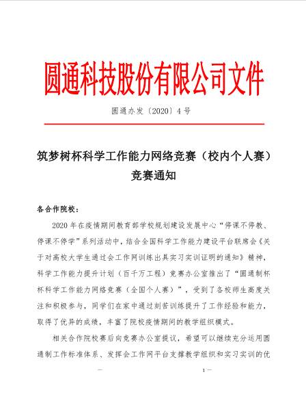 本次大赛由相关院校向竞赛办公室提议,希望充分运用圆通制工作标准体系、发挥会工作网平台支撑教学组织和实习实训的优势,同时作为“圆通制杯”第五届全国大学生工作能力竞赛预热,为合作院校培养和选拔出优秀的选手,达到“以赛促学”的目的,促进各项目院校文科岗位精英人才的培养,提高大学生科学工作的经验与能力。为此竞赛办公室特别推出了“圆通制杯”科学工作能力网络竞赛。我校圆通科学工作院在认真研读比赛规则后,结合我校实际情况,积极组织校内在校大学生参加通识通用类和人事类两个比赛项目。