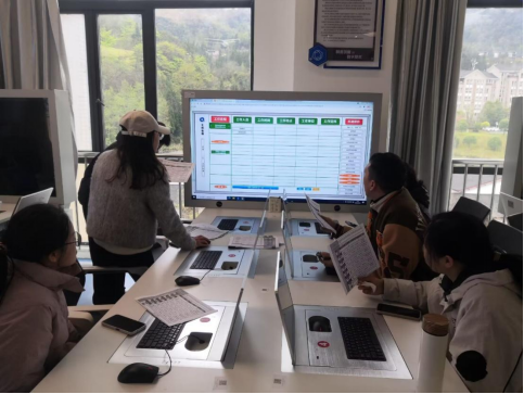会议上李清茂教授对教研室老师在评估期间工作任务进行了详细部署,具体分工包括:一是唐齐粒老师负责培训旅游管理与服务教育专业的学生使用智能共享导游亭进行导游讲解训练、使用实景互动VR教学资源进行体验学习和使用数字化旅游交互实战演练沙盘平台模拟企业经营;二是余涛老师负责培训财会专业学生使用财务软件进行会计信息系统和财会综合实训演练和科学工作体验中心学生使用工作标准摸具进行教师工作标准体验与演练;三是龙心雨老师负责培旅游管理与服务教育专业学生使用沙盘电脑功能使用教师工作标准。